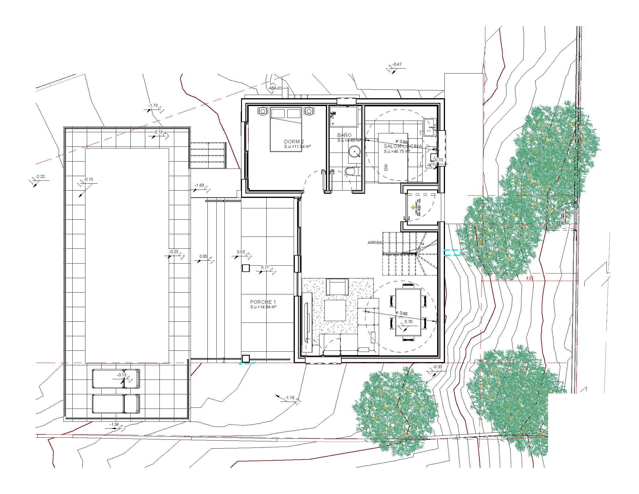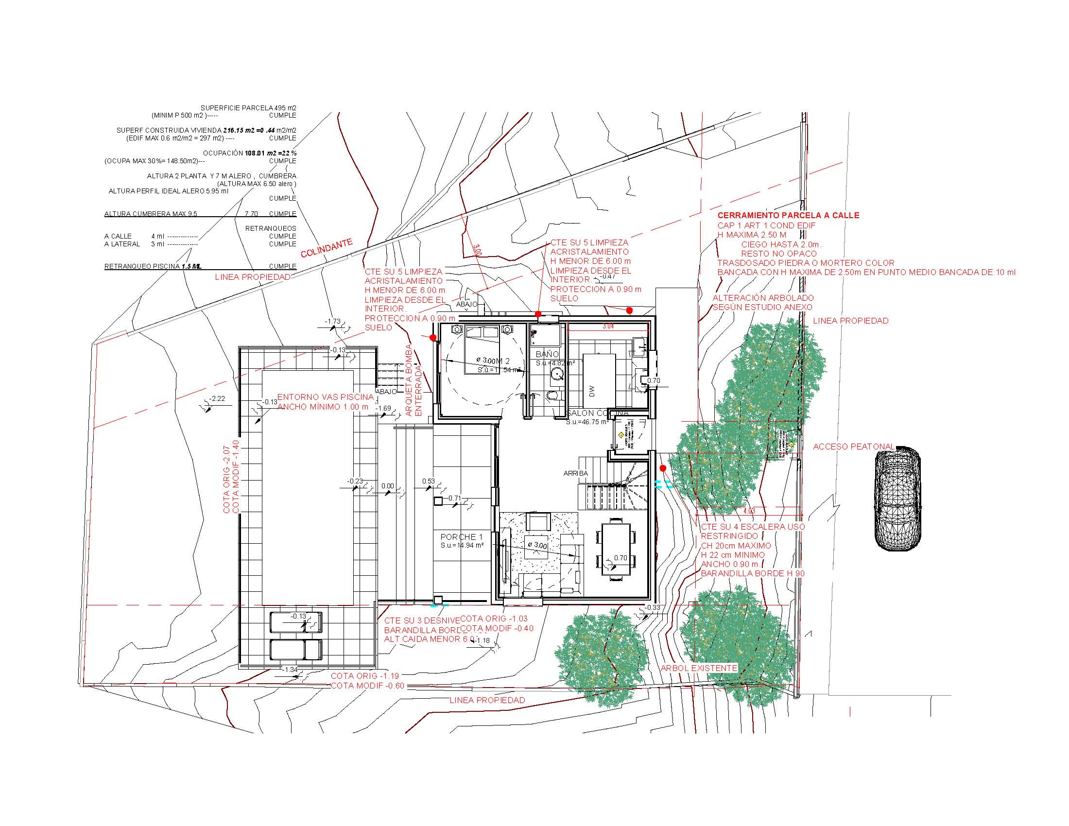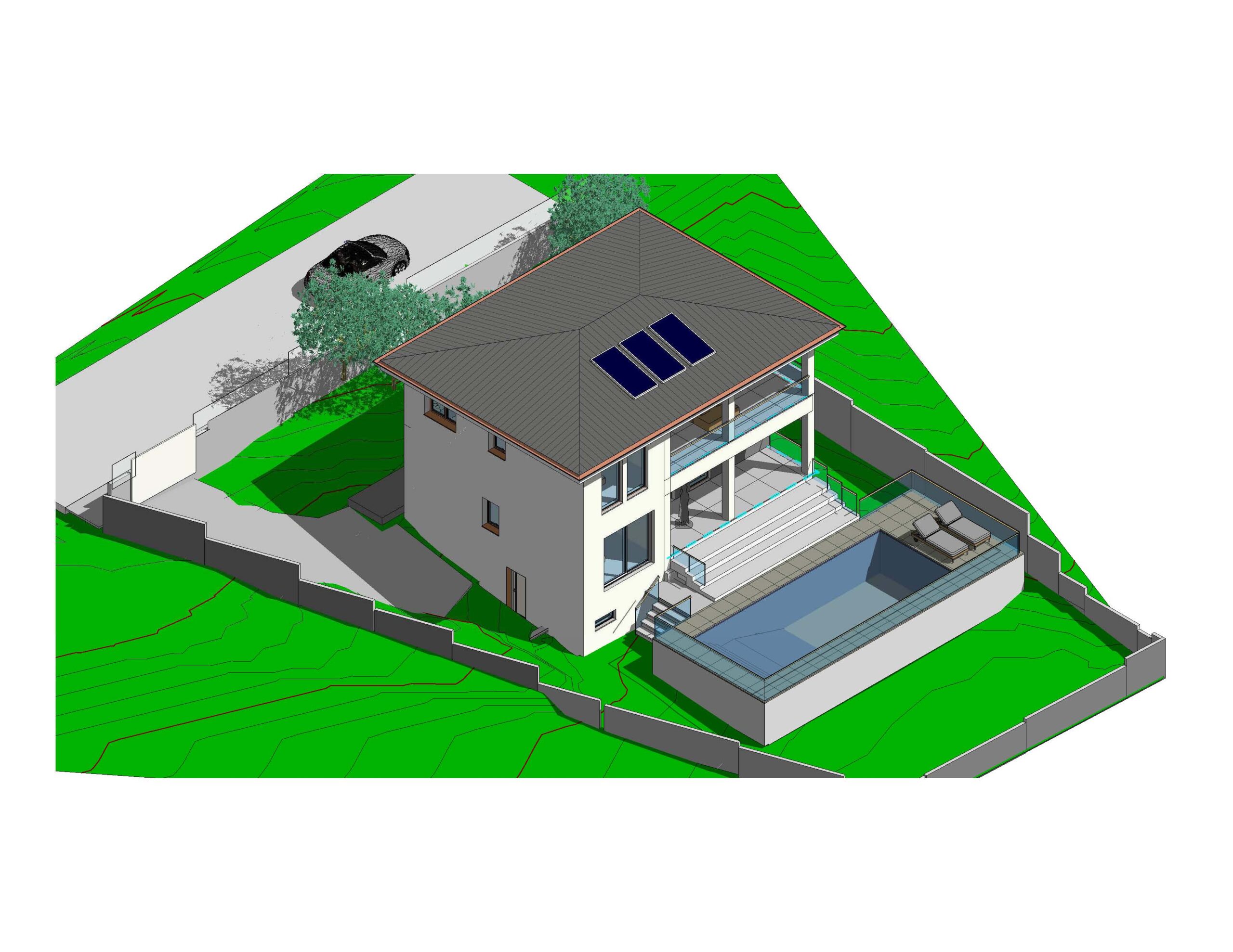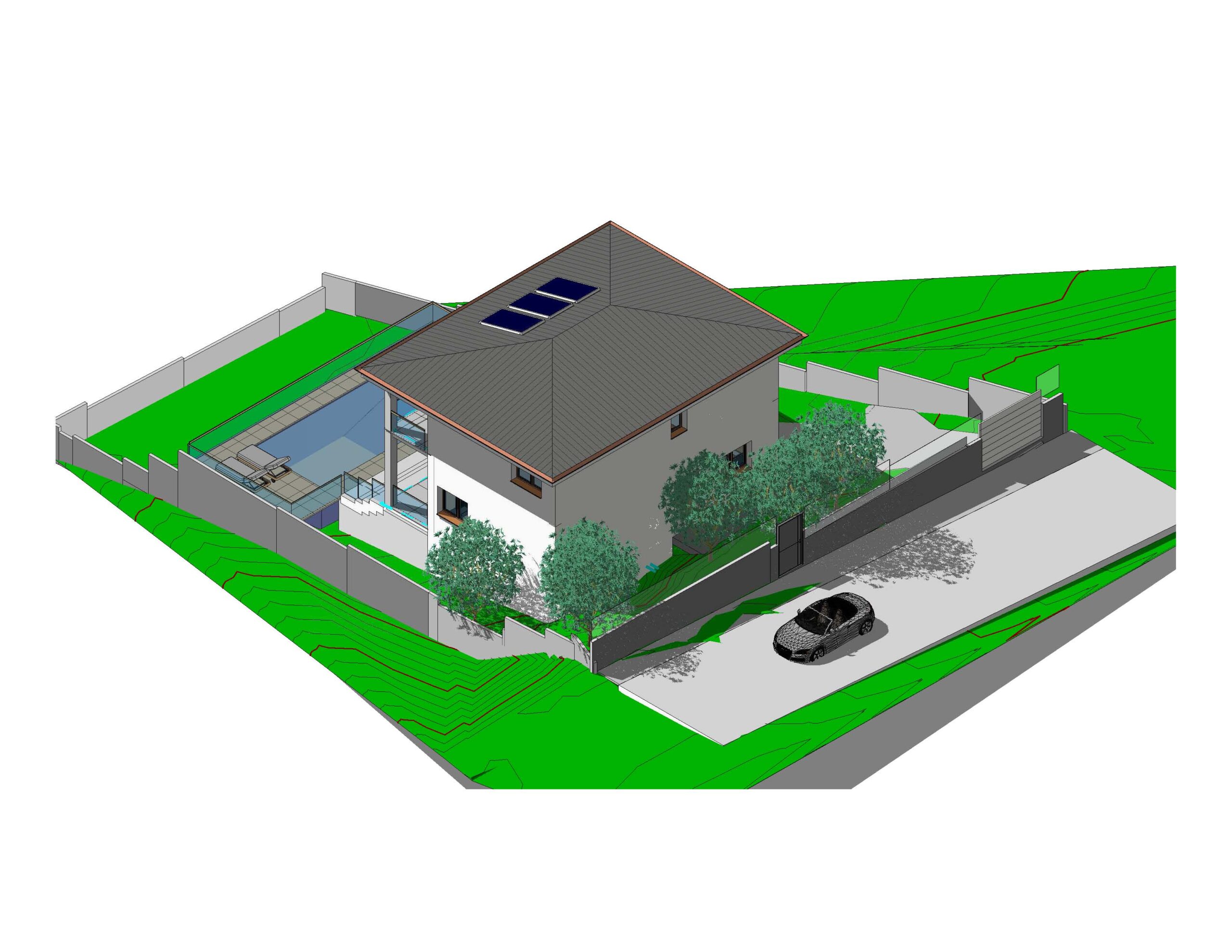 Proyecto de vivienda unifamiliar aislada en parcela en pendiente. En fase de desarrollo de contratación de obra