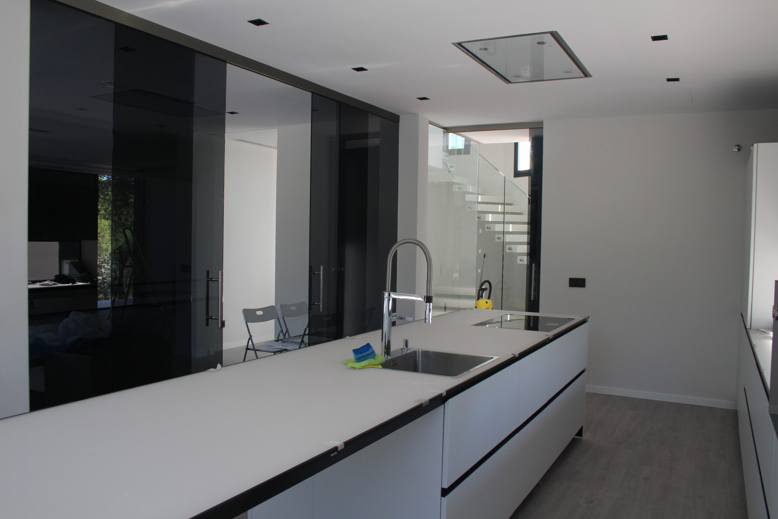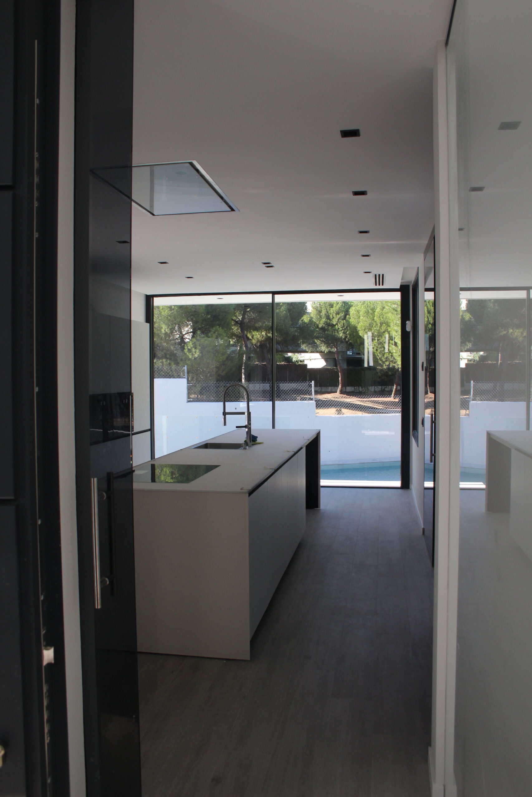 Vivienda unifamiliar aislada con piscina con sótano para garaje e instalaciones. La vivienda se desarrolla entorno a un núcleo central de iluminación.